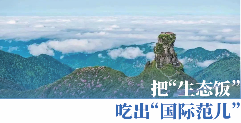 “天公作美!前几天,梵净山迎来一场瑞雪,预示贵州 旅游又将是‘丰年’!” 3月9日,在2025年全国两会贵州代表团第四场集中采访中,全国人大代表,铜仁市委副书记、市长穆嵘坤 介绍,作为“黄小西吃晚饭”的一员,梵净山2024年接待 游客 198万人次,其中入境游客 3.7 万多人次,增长 119%,创历史新高,“带动引领铜仁全市接待国内游客人次、旅游总花费分别增长14.5%、15.7%,增速均排全省 第一。” 不仅如此,过去一年,梵净山以其世界自然遗产地、 联合国“人与生物圈”保护网成员、地球同纬度唯一遗世 孤岛绿洲等多重国际身份,被IUCN组织列入世界自然 保护联盟绿色名录,国际山地旅游联盟亦将梵净山命名 为首批“世界旅游名山”。“这让‘黄小西吃晚饭’不仅吃上 ‘生态饭’,也吃出了‘国际范儿’!”穆嵘坤说。 生态旅游蓬勃发展,生态特色产业发展也取得了显 著成就。穆嵘坤介绍,去年梵净抹茶核心基地新增了3万 亩茶园,世界抹茶超级工厂更是衍生出抹茶产业园、抹茶 小镇等一二三产融合、茶文旅一体化发展的新特产品。目 前,梵净抹茶的国际市场已拓展至47个国家和地区。 在保护与开发中寻求平衡,让绿色梵净山成为世界 级旅游景区,这不仅是铜仁市建设世界级康养旅居目的 地的重要IP,更是其旅游发展的核心目标。穆嵘坤介绍, 当前铜仁正全力推进三件大事:一是围绕资源禀赋,全 力守护世界级旅游品牌;二是顺应客源市场需求,精心 打造世界级旅游景区;三是聚焦服务保障,加快建设世 界级旅游城市。 “哪吒也来到了梵净山!大家请看,我手中的这幅作 品,是我们的绣娘们用指尖的温度,将传统文化与非遗技 艺完美融合,在纤柔的树叶上精心绣制而成,生动展现了梵山净水的绝美风光。”说罢,穆嵘坤现场展示了一幅精 美的叶脉绣版“哪吒”,引得现场一片赞叹。 穆嵘坤还介绍,铜仁万山朱砂矿系列文化遗产已列 入2024年《中国世界文化遗产预备名单》,万山朱砂矿系 列文化遗产集中展现了中国汞工业发展历程和悠久的朱 砂历史文化价值,是全球稀缺的矿业文化遗产。多年来万 山持续加强遗产保护,成立万山朱砂矿系列文化遗产保 护中心,编制《万山朱砂汞矿采冶史迹保护管理规划纲 要》,实施文物修缮和恢复工程,邀请清华大学、四川大学、北京科技大学和贵州省考古研究所等高校和研究机 构分别开展价值研究和考古等工作。铜仁计划让万山汞 矿联动梵净山世界自然遗产,形成跨业态文旅共同体,构建铜仁“文化遗产+自然遗产”双遗产双核驱动的世界级康养旅居目的地。