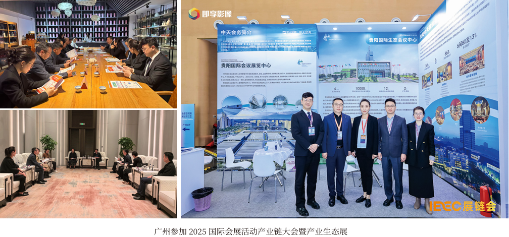 | 2025 国际会展活动产业链大会暨产业生态展(IEEC展链会)于2月21 - 22日在广州南沙国际会展中心举办。大会以“链 合生态,向新图强”为主题 ,吸引超1500名政商学界代表及多个会展头部行业参会,涵盖国际会展行业、活动策划公司、国 际级协会代表、地方旅文局代表、品牌买家、MICE公司、旅行社等。不仅如此,大会还首创“双主论坛”,聚焦“展产融合”与 “商旅文体健融合”,设置了百亿招采计划、会展网红节、AIGC应用创新大赛等特色活动。 期间会议中心不仅在大会现场设置宣传展位,并陪同省政府领导一同对广东鸿威会展集团、广州市艺帆展览服务公司、 深圳华巨臣控股集团总部进行实地拜访,积极参与到与各企业的深度交流座谈中,以中天会务的整体品牌露出,不仅提高了企业的影响力,还与行业的头部企业建立了良好合作关系。 | |